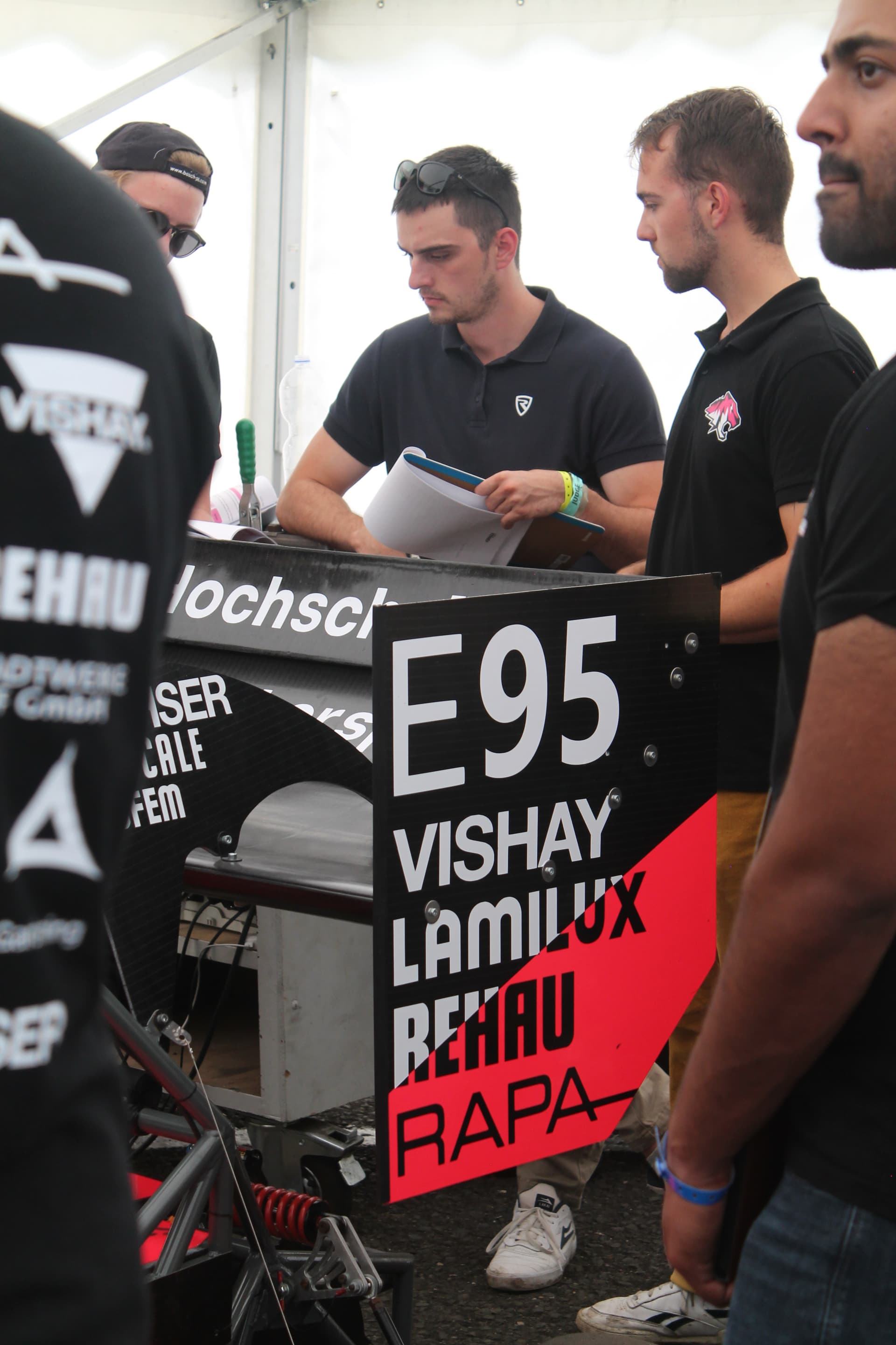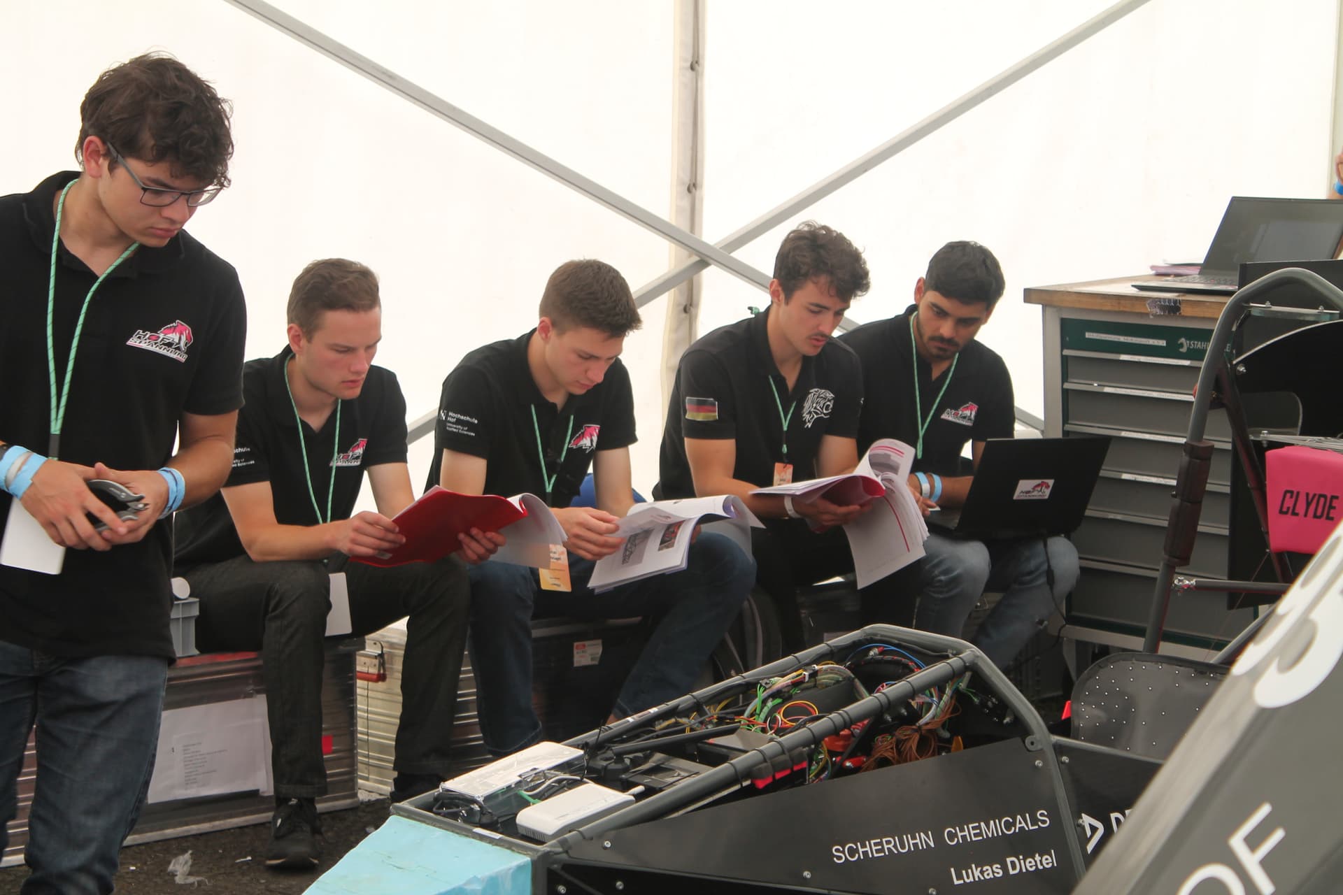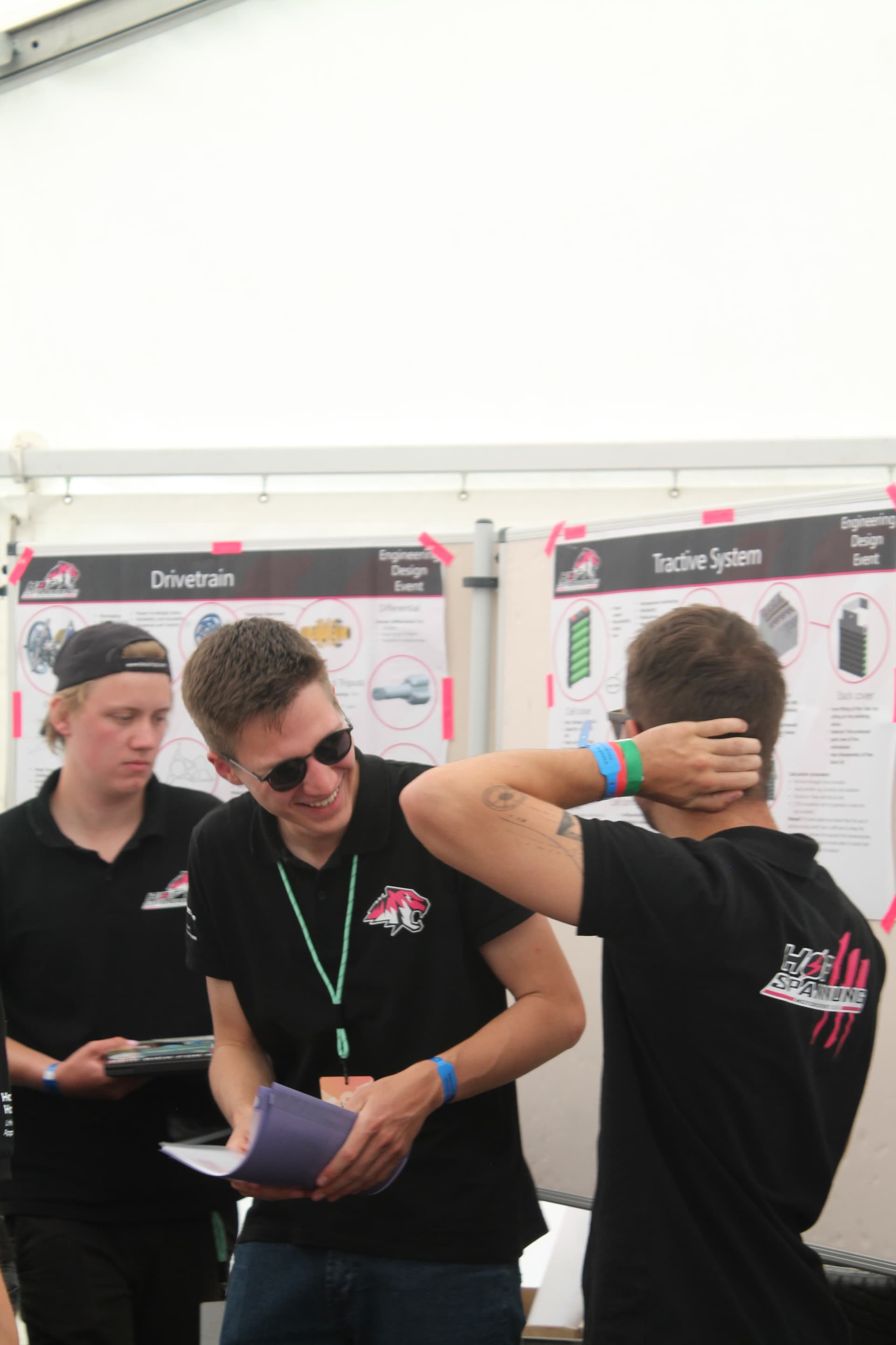 Mit den statischen Disziplinen sind wir zufrieden. Auch das M-Scruti konnten wir nach kleineren Verbesserungen erfolgreich abschließen. Leider sind während des Akkuscrutis einige Unstimmigkeiten aufgefallen, die in dem verfügbaren Zeitraum nicht hätten repariert werden können. Somit musste das gesamte Team die Nachricht: „nicht bestanden“ erst einmal verdauen.